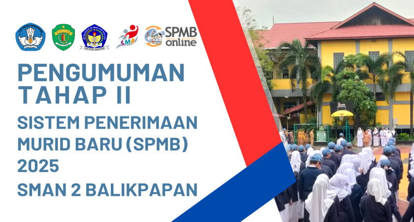 Berdasarkan Surat Keputusan Plt. Kepala SMA Negeri 2 Balikpapan Utara Nomor:  400.3.8.1/1056/SMA.2 Tahun 2025 (terlampir di bawah artikel), kami mengucapkan selamat kepada peserta didik yang dinyatakan diterima di SMA Negeri 2 pada Tahap II.